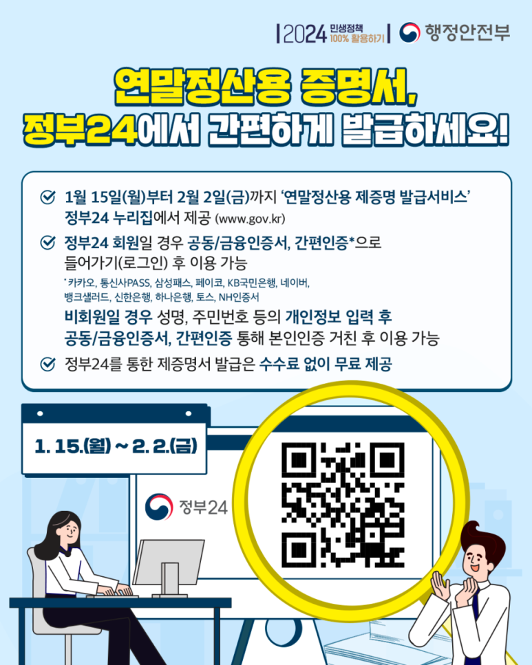 <제증명 간편 발급 운영기간> 2024년 1월 15일(월)부터 2월 2일(금)까지
